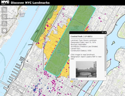 Utilizing a simple responsive interface, New Yorkers and visitors can use any device to find individual, interior, and scenic landmarks, as well as historic districts around the city and near their current location. Users can also freely explore by clicking on landmark points on the map. The Discover NYC Landmarks.map is the first time that New Yorkers can interactively search for designated landmarks with corresponding photos and designation reports. Designation reports are published at the time of a property’s landmark designation, and provide an in-depth analysis of the building’s history and significant architectural features. Search results on the map also include important landmark information such as architect, style, and construction date. In addition to designated landmarks, the map displays “calendared” sites, which are not designated and currently under consideration by the Commission. |