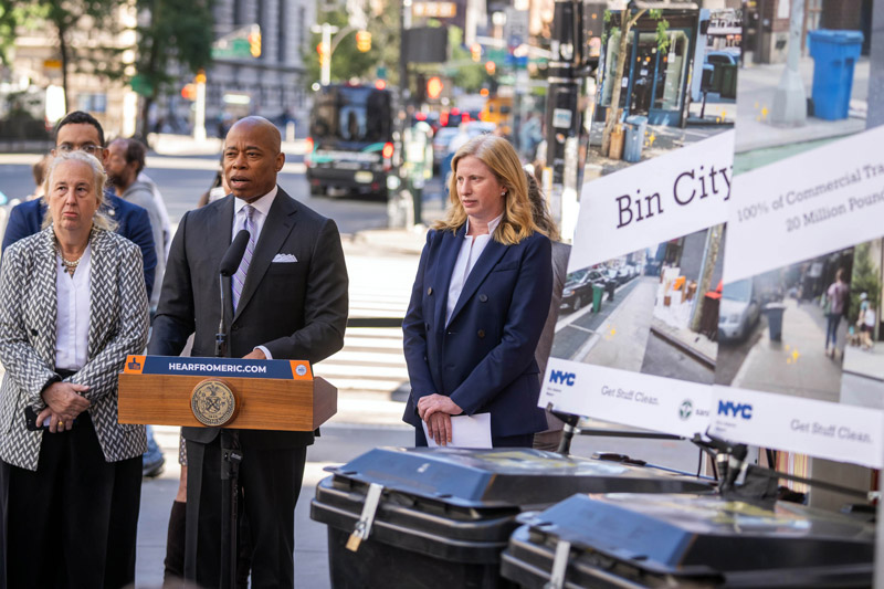 NEW YORK – New York City Mayor Eric Adams and New York City Department of Sanitation (DSNY) Commissioner Jessica Tisch today announced the next phase of the Adams administration’s war on rats: a new plan to get more black trash bags off of city sidewalks by requiring all businesses to put trash in containers. Advancing the administration’s efforts to “Get Stuff Clean,” reclaim public space, and improve quality of life for all New Yorkers, DSNY today proposed a new rule under which all commercial trash — approximately 20 million pounds per day — must be in a secure, lidded container beginning March 1, 2024.