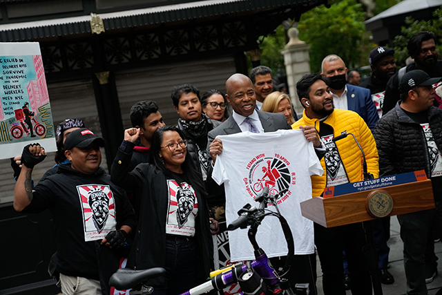 New York – New York City Mayor Eric Adams and U.S. Senate Majority Leader Charles Schumer today announced a first-of-its-kind hub program for New York City's 65,000 delivery workers that uses existing infrastructure, like vacant city newsstands, to provide a place to rest and recharge. Street Deliveristas Hubs will create a place for delivery workers to seek shelter from the elements, charge both their electric bicycles and cell phones, and, by revitalizing these empty public spaces, ensure New York City's public spaces serve all. Through a $1 million federal grant secured by Senate Majority Leader Schumer in the upcoming appropriations bill for Workers Justice Project/Los Deliveristas Unidos, this pilot program will renovate and transform underutilized structures on city properties. A portion of the federal grant will also be used to help renovate a worker center in Williamsburg for deliveristas.