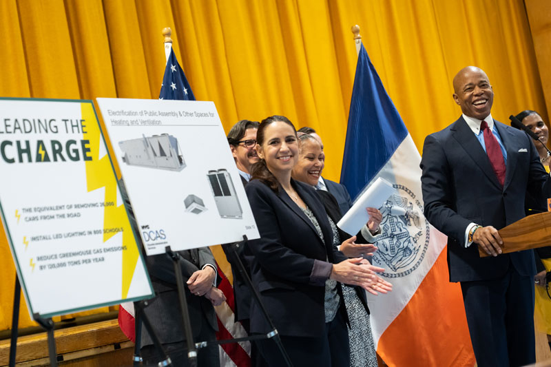 NEW YORK – New York City Mayor Eric Adams today launched “Leading the Charge” — a $4 billion plan to combat climate change, create healthier learning environments, improve air quality in communities disproportionately burdened by climate change and environmental injustice, and help develop the next generation’s green workforce. With this plan, the construction of all new city schools will be all-electric, and the city will complete or initiate the conversion of 100 existing schools to all-electric heating by 2030.