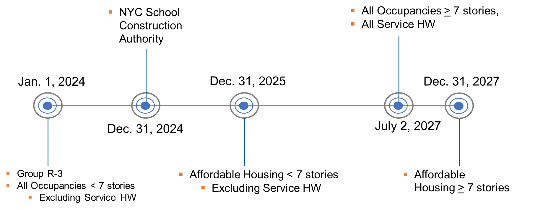 These buildings are required to comply based on the filing date of the initial GC application, as follows: