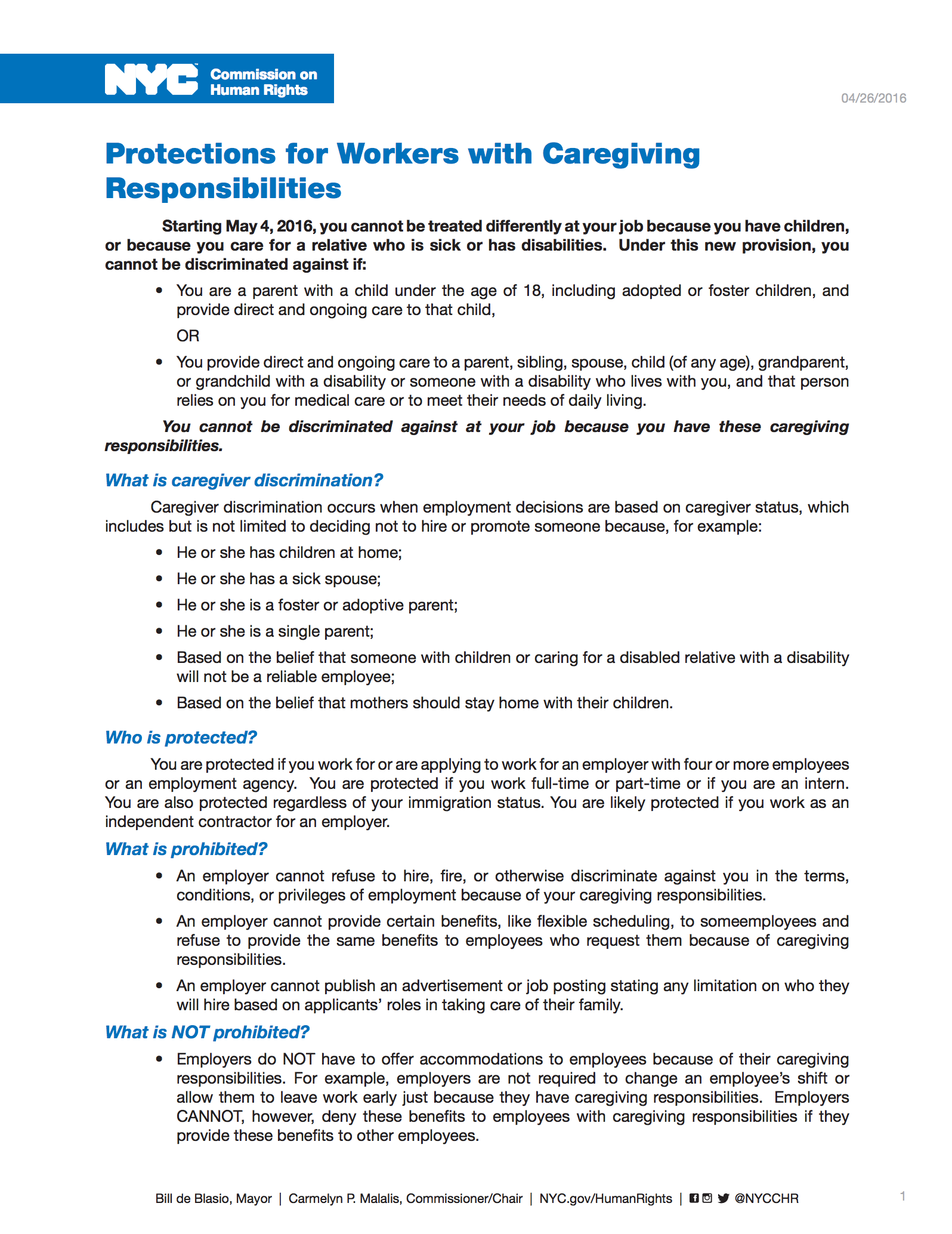 All New Yorkers deserve to have equal access to housing, employment, and public places. Our factsheets give a snapshot of rights and responsibilities under the NYC Human Rights Law.