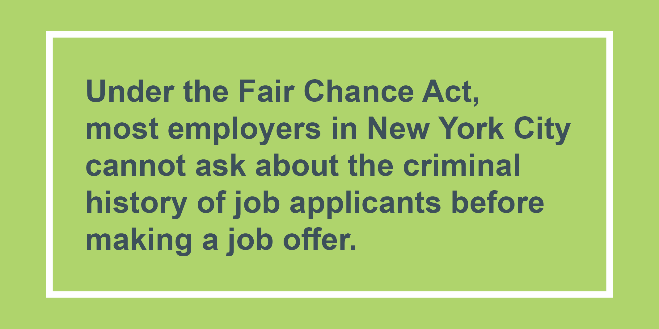 Job applicants deserve to be judged first and foremost on their qualifications. The City Human Rights Law makes it illegal for most employers in New York City to ask about the criminal record of job applicants before making a job offer. This means job postings, applications, and interview questions cannot include inquiries into an applicant's criminal record.