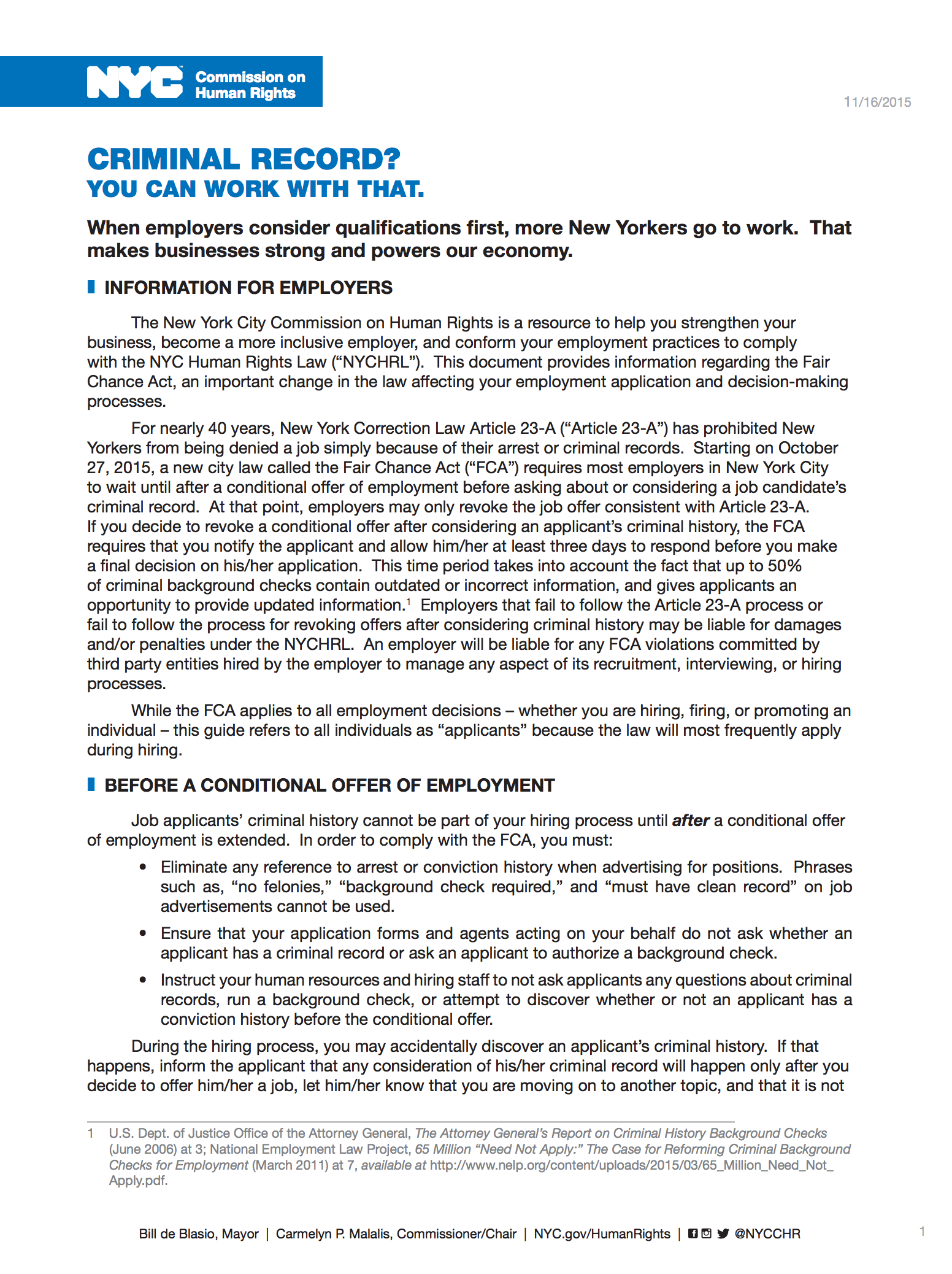 Fair Chance Act Factsheet for Employers