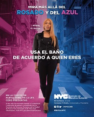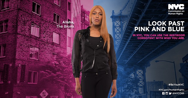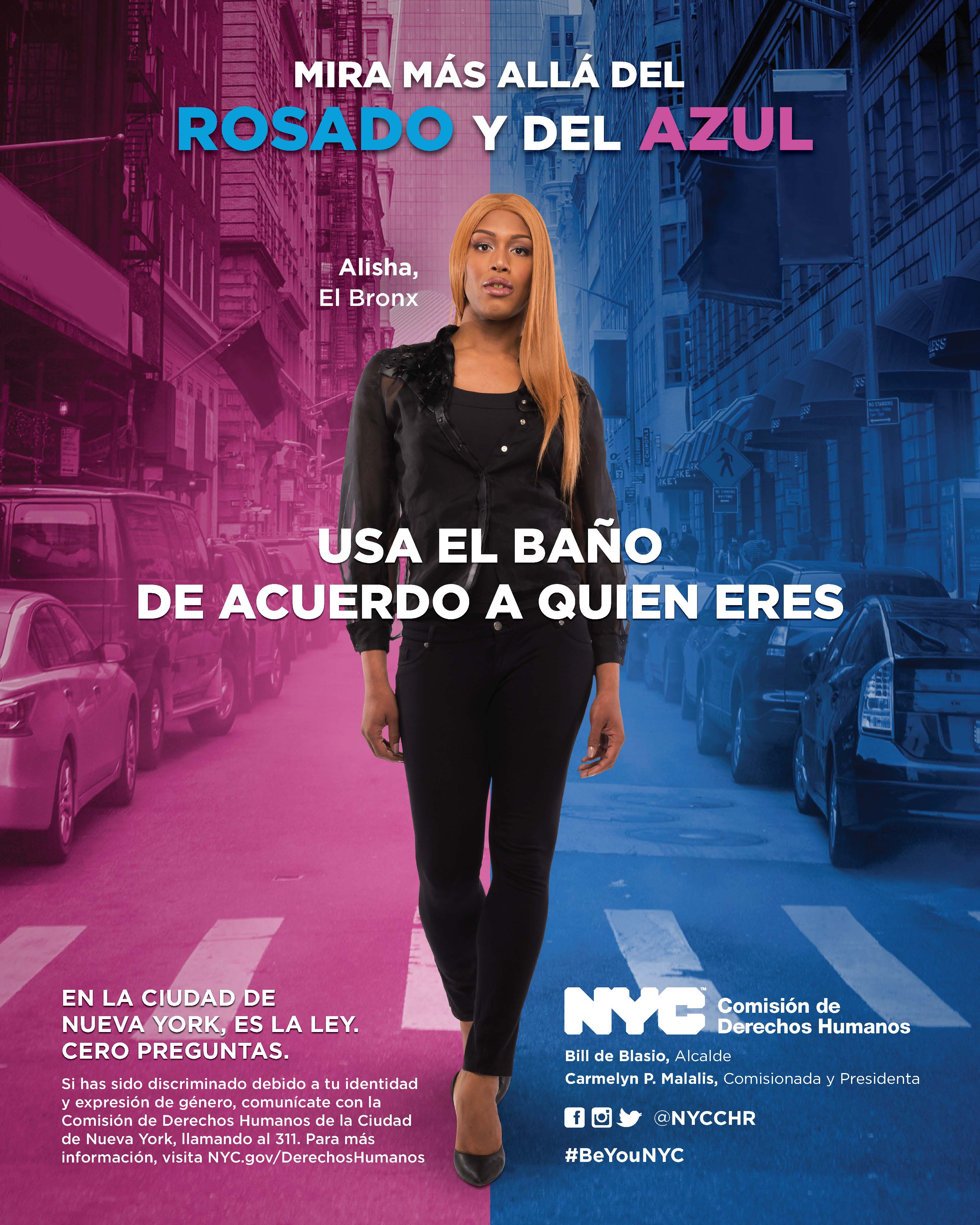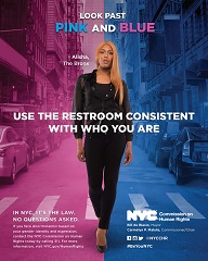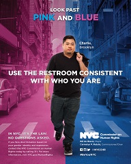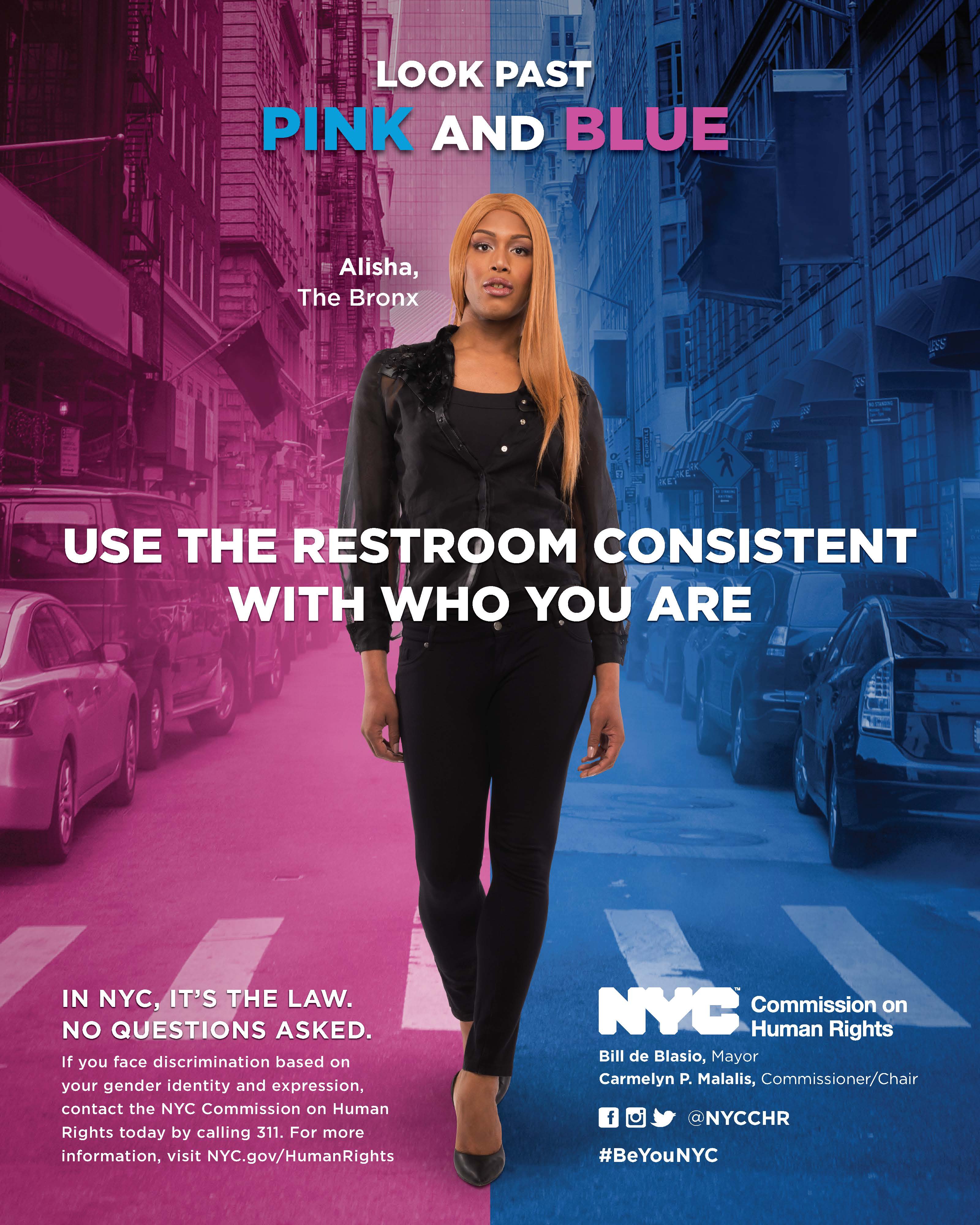 Because safe and equal bathroom access is a fundamental human right, as well as the law of the land in New York City, the NYC Commission on Human Rights has launched the nation's first government-led citywide ad campaign affirming every New Yorkers' right to use the bathroom consistent with their gender identity, regardless of their gender assigned at birth. It has been illegal in New York City to discriminate against an individual on the basis of gender identity or expression, including denying access to bathrooms, since 2002.