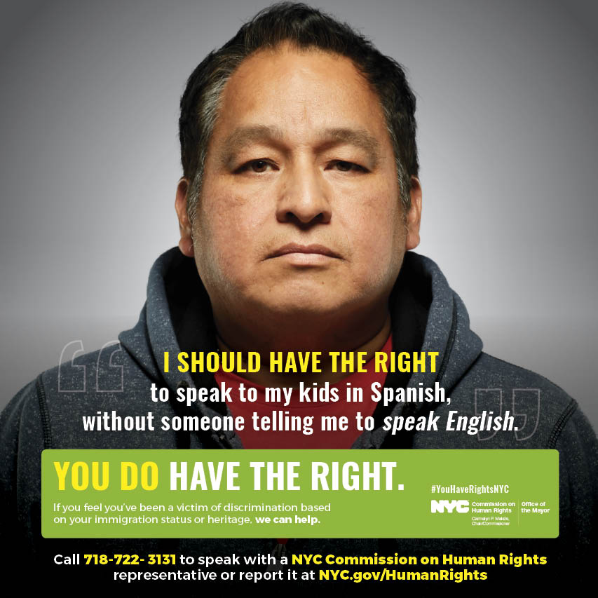 The NYC Commission on Human Rights launched this citywide anti-discrimination campaign to affirm New Yorker's right to live, work, and pray free from discrimination and harassment. The campaign, which included ads, PSA videos, and community events, follows a significant increase in reports of discrimination and bias incidents in NYC to the NYC Commission on Human Rights.