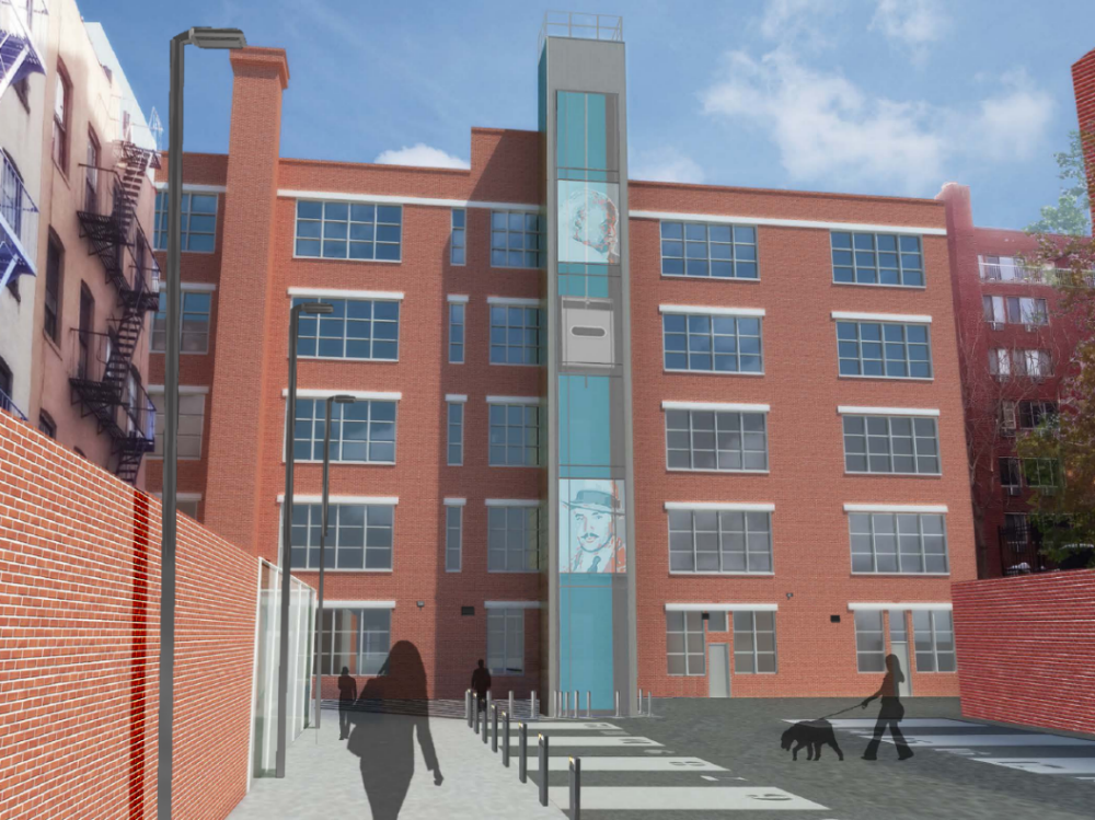 An artist’s rendering of the project that will make The Clemente fully ADA compliant and will add a new elevator tower and cab. Image courtesy DDC.