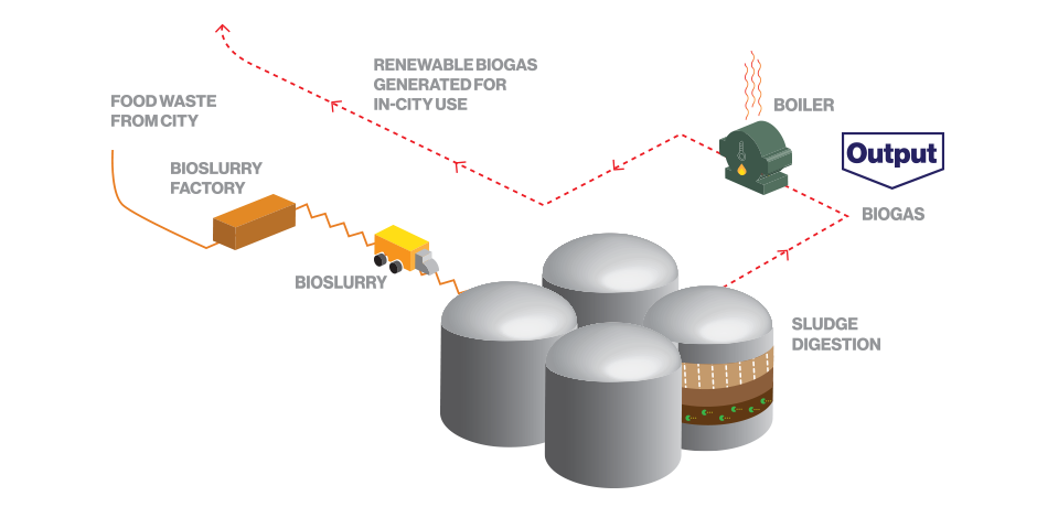 Currently, we are working with other city agencies and industrial partners to recover organic solids from the City’s waste stream. Food scraps are collected from grocery stores, restaurants, schools, and businesses and processed off-site into a nutrient-rich mixture called bioslurry. This material is mixed in with the sludge at our Newtown Creek Wastewater Resource Recovery Facility to help produce more biogas.