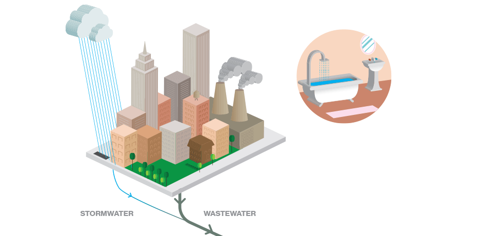 Every day, wastewater goes down the drains from homes, schools, businesses, and factories and flows into New York City’s Sewer System. In most areas of the city, the combined sewer system collects and conveys wastewater and stormwater runoff from streets, sidewalks, and rooftops, together to a wastewater resource recovery facility.