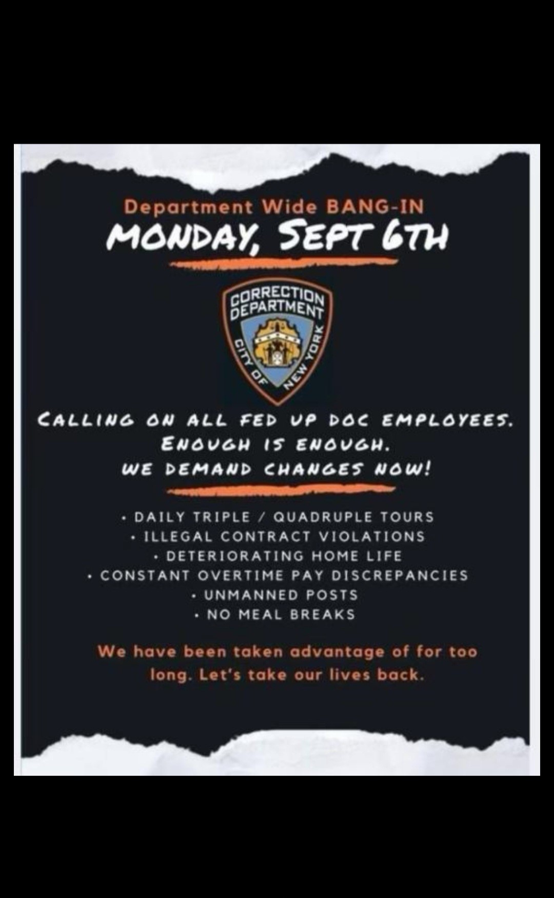 We need you to get in here and help your fellow officers in uniform and to help restore the department’s reputation and provide decent care for those incarcerated in our facilities.
