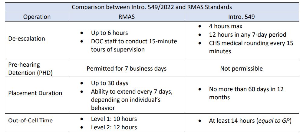 permissible. RMAS out-of-cell time for restrictive housing was 10 to 12 hours. Under the bill, it