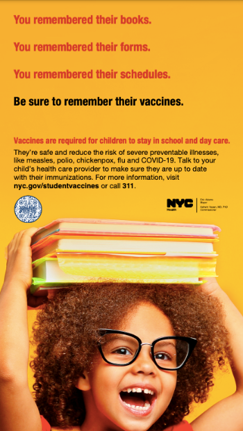 August 21, 2023 — The Department of Health and Mental Hygiene launched a new campaign today reminding New Yorkers to make sure they are caught up on their routine vaccinations.