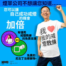 願意戒煙的紐約市民可與戒煙教練交談,並可撥打紐約州吸煙者戒煙專線 (NYS Smokers’ Quitline) 或亞裔吸煙者戒煙專線 (Asian Smokers’ Quitline) 申請免費的尼古丁治療藥物