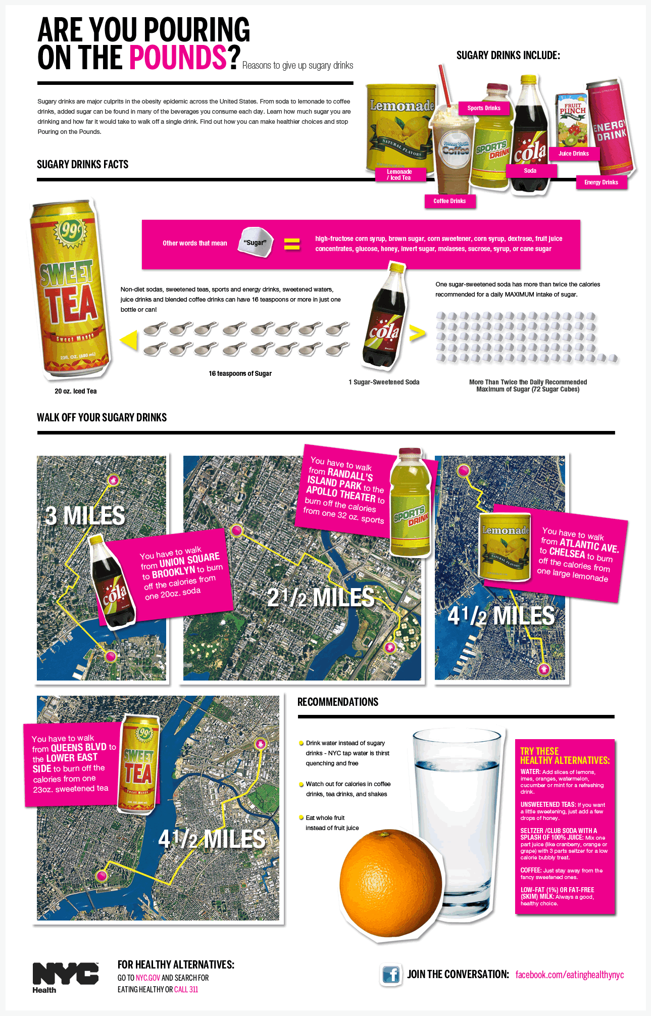 La industria de las bebidas gasta miles de millones de dólares promoviendo bebidas azucaradas. Ellos quieren que las personas piensen que las bebidas azucaradas son sanas si se ejercita y come sanamente, pero tan solo una bebida azucarada puede aportar más del mínimo recomendado de calorías por el azúcar añadida. Una botella de refresco de 20 onzas puede contener más de 15 cucharaditas de azúcar añadida, eso equivale a más de 250 calorías con muy poco valor nutricional.