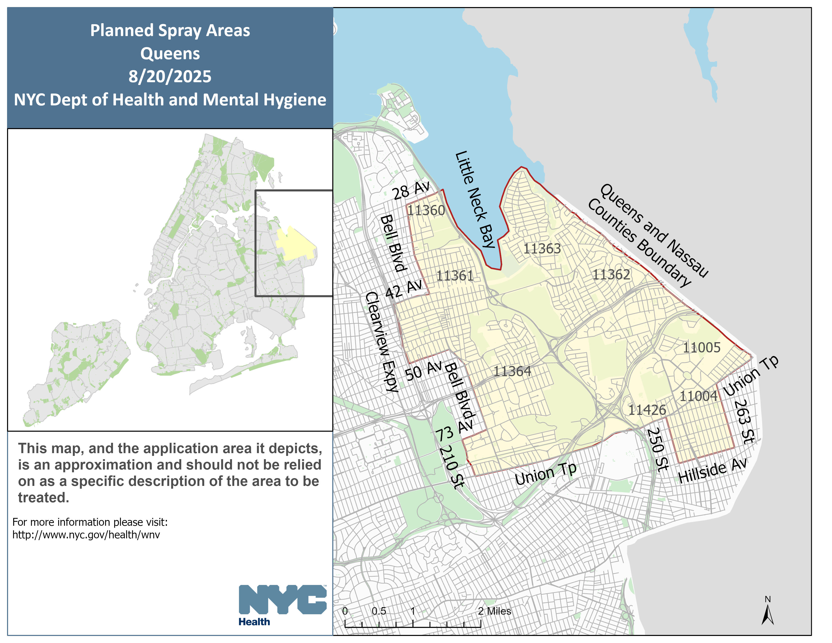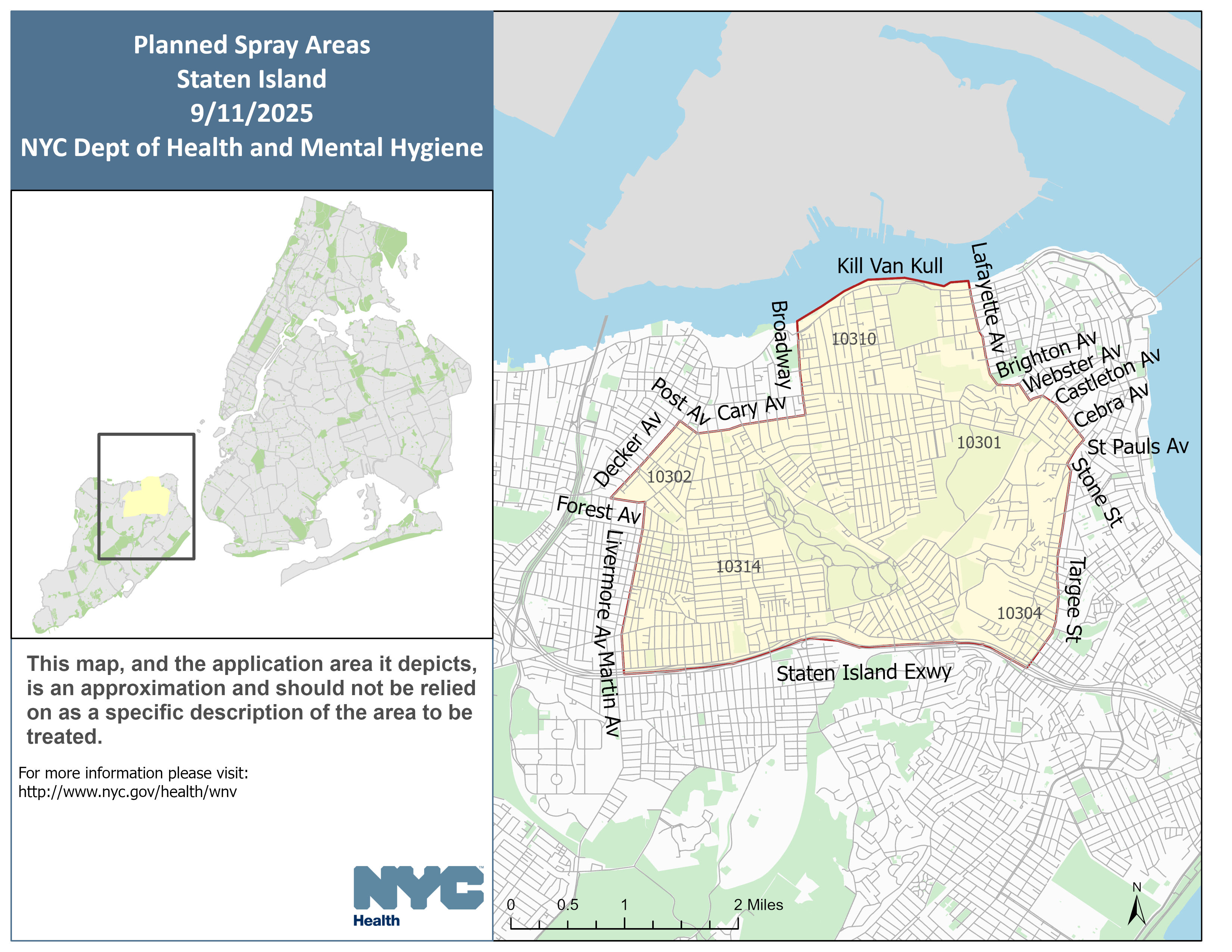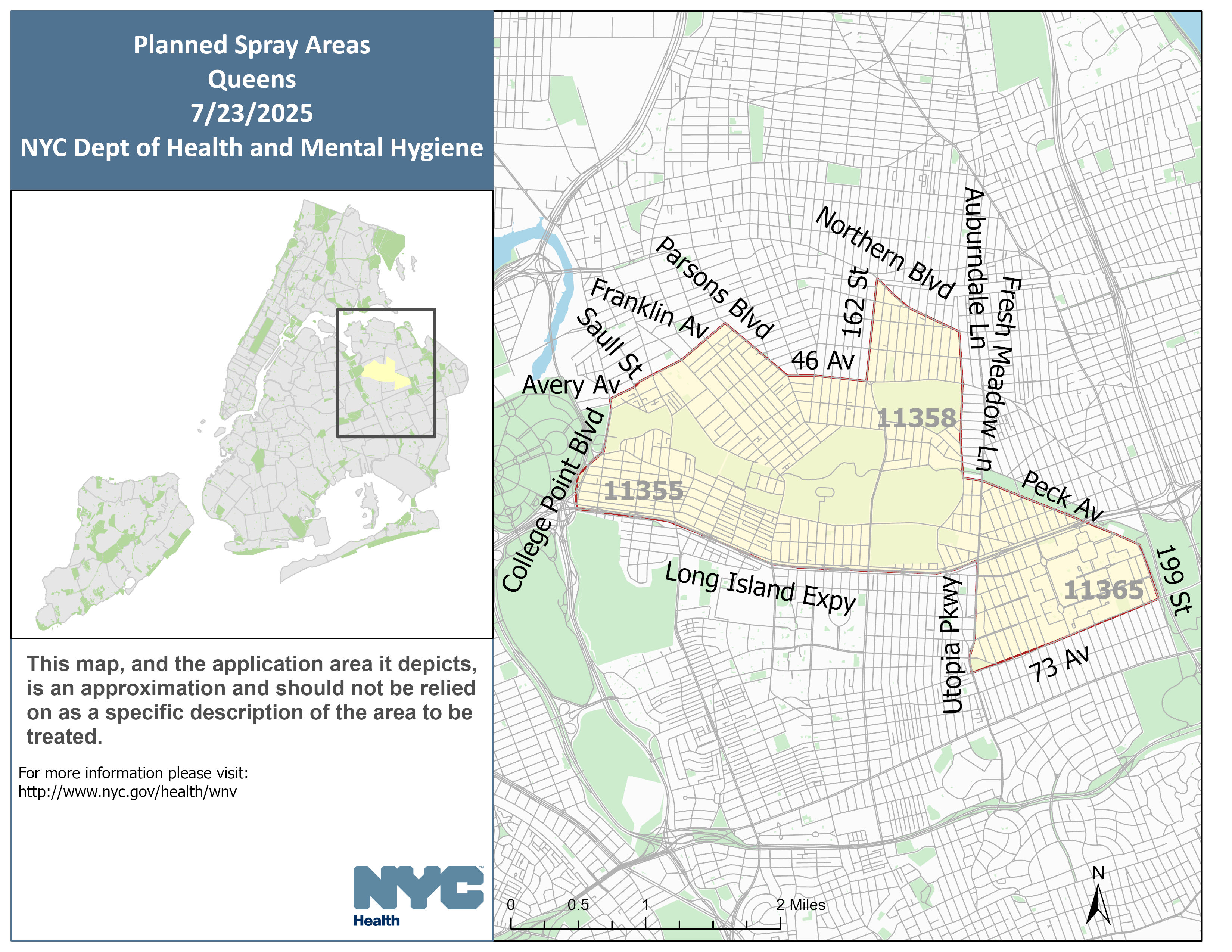 The Health Department provides advance notification before dropping larvicide and spraying adulticide.