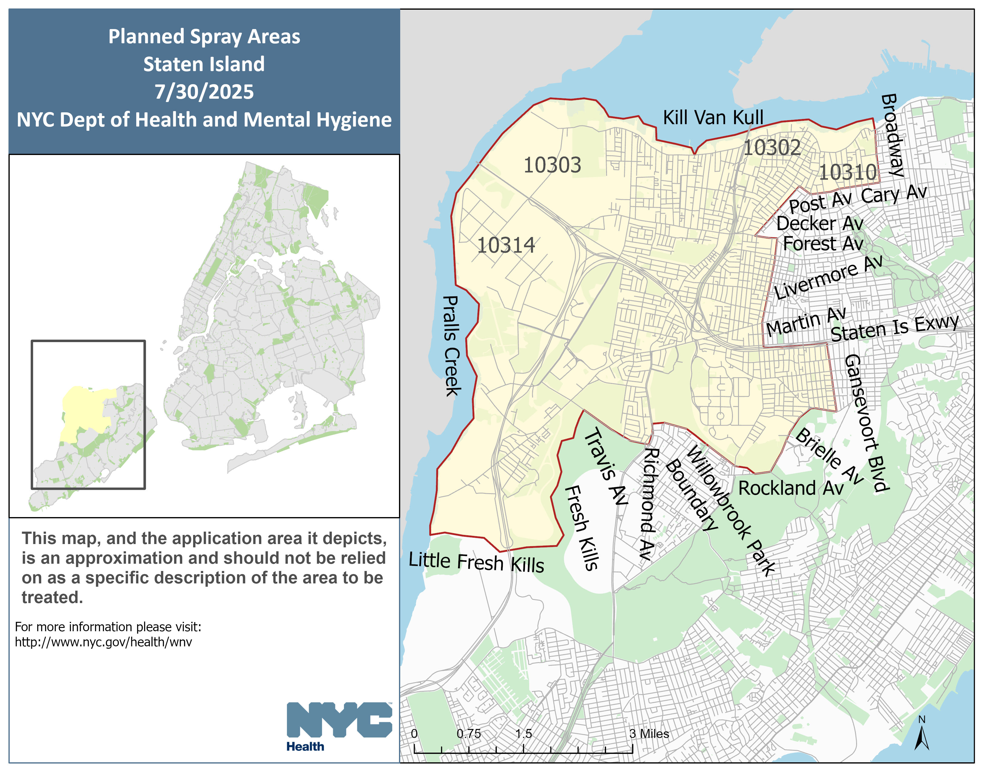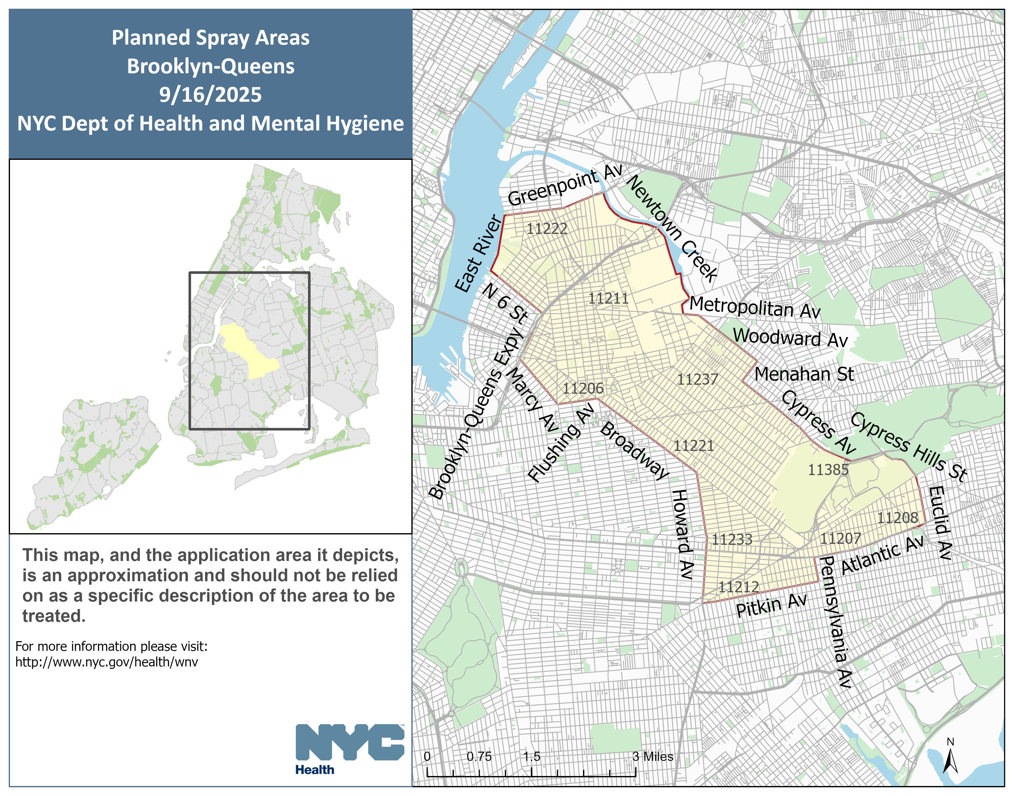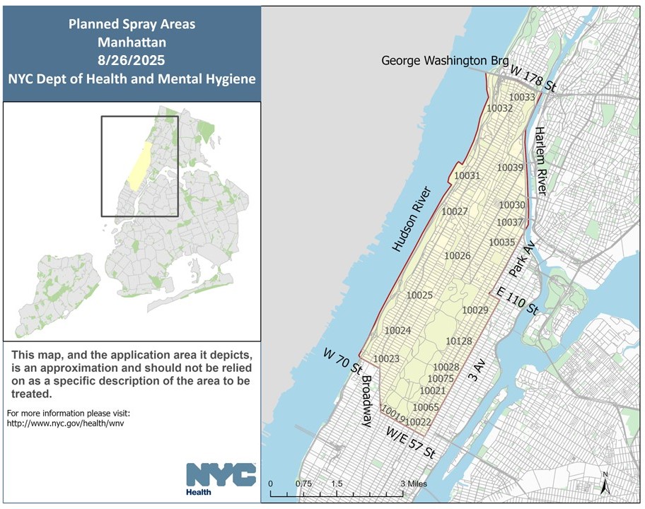 The Health Department provides advance notification before dropping larvicide and spraying adulticide.