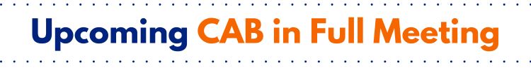 The next CAB in Full meeting date is November 20, 2025 from 6pm-8pm. Meeting will be Broadcast live on You Tube.