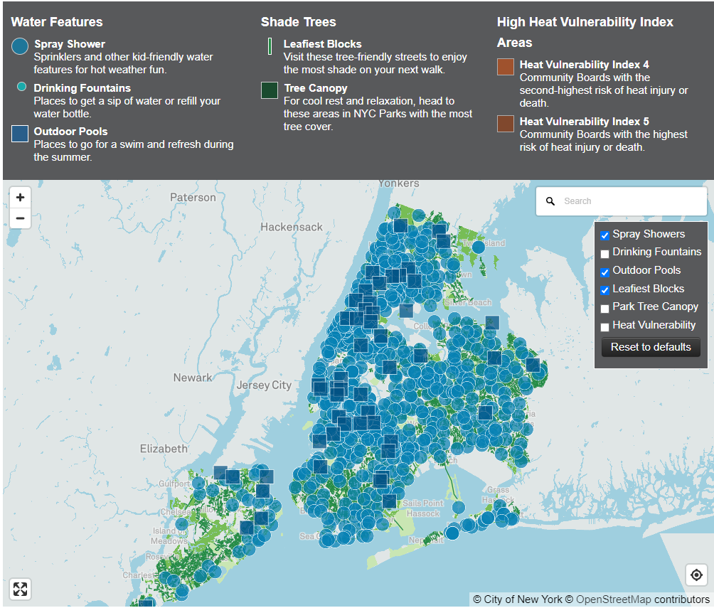 New York City Parks’ Cool It! NYC map can help New Yorkers find places near them to hydrate, refresh, and stay in the shade from NYC Parks.