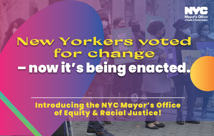 The NYC Mayor's Office of Equity & Racial Justice (MOERJ) is comprised of several governmental offices and commissions that bring an intersectional approach to equity. Learn more today.