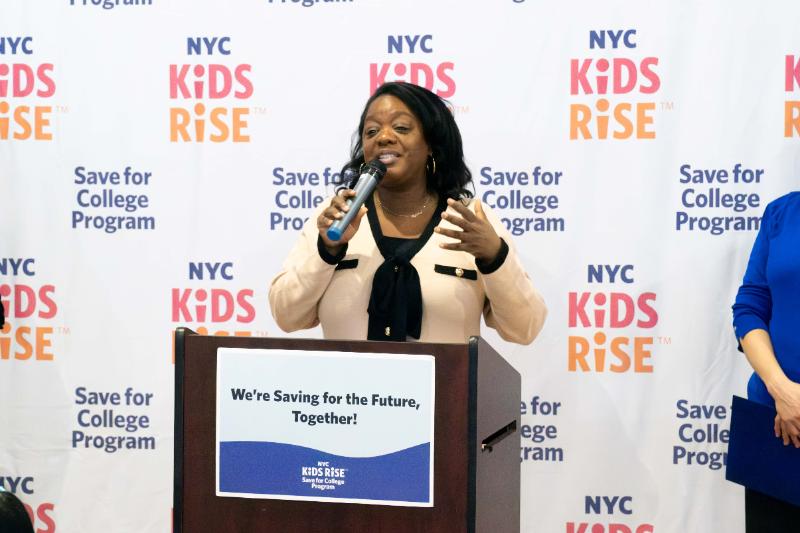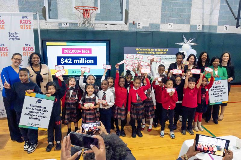 January 31, 2025, NYC Chief Equity Officer and NYC Mayor’s Office of Equity & Racial Justice Commissioner Sideya Sherman recently joined our partners at NYC Public Schools and NYC Kids Rise to celebrate a major milestone! Over 282,000 public school students now have Save for College accounts, with more than $42 million invested toward their future college and career education.