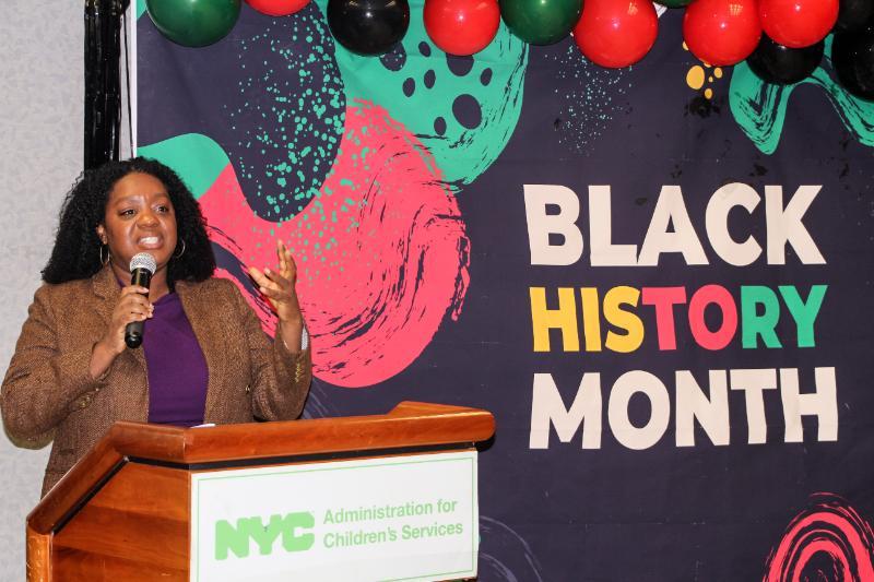 February 28, 2025, NYC Mayor's Office of Equity & Racial Justice (MOERJ) Commissioner Sideya Sherman delivered remarks at the NYC ACS African American Heritage Committee's Black History Month event. This joyous event brought staff together to celebrate the countless contributions of African Americans that shaped the very foundation of America.