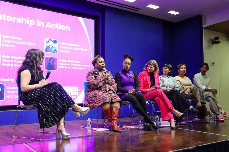 June 26, 2025, NYC Her Future hosted “Power Talks: Money Moves That Matter”—an inspiring evening of mentorship, connection, and empowerment for young women of color early in their careers. Held in partnership with Step Up and the NYC Department of Youth & Community Development, the event welcomed women aged 18–29 who are ready to take bold steps toward building their futures—personally and professionally. The evening opened with welcoming remarks from NYC Mayor’s Office of Equity & Racial Justice (MOERJ) Commissioner Sideya Sherman, a thought-provoking fireside chat and panel discussion, a high-energy mentoring session, and free professional LinkedIn headshots. Events like this reflect our ongoing commitment to equity, leadership, and opportunity for the next generation.