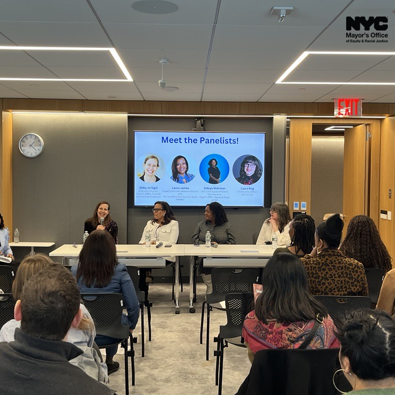 March 26, 2025, NYC Mayor's Office of Equity & Racial Justice (MOERJ) Commissioner Sideya Sherman joined NYC Talent for an empowering panel discussion, in celebration of Women’s History Month, joining incredible women leaders from New York City’s government agencies and the NYC Workforce Development Board. The conversation showcased their achievements, challenges, and journeys in leadership roles, offering inspiring and motivating insights that reminded us of the power of collaboration, resilience, and the ongoing pursuit of equity. Together, we continue to pave the way for future generations!