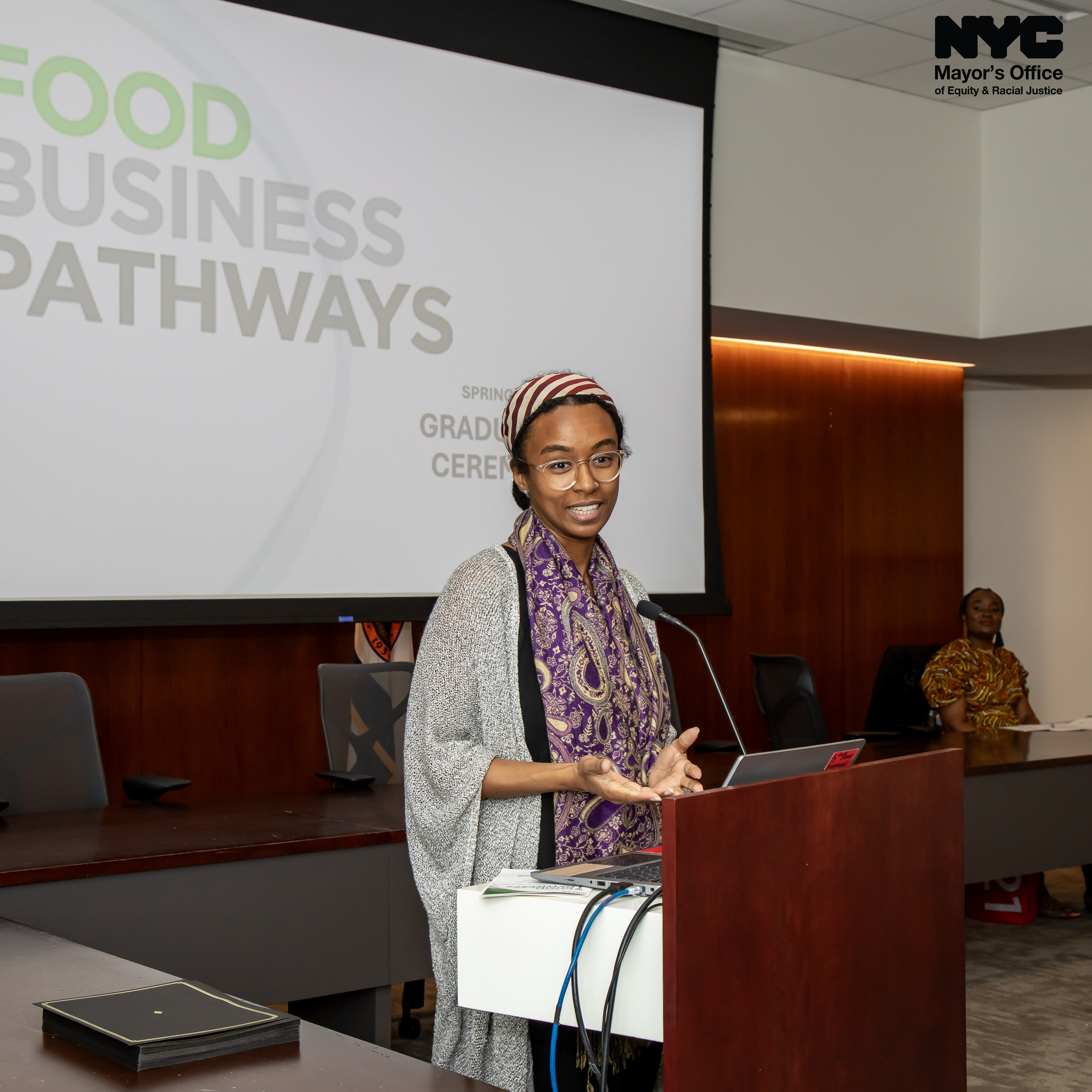 May 12, 2025, The New York City Housing Authority (NYCHA) Food Business Pathways program—supported by the NYC Mayor's Office of Equity & Racial Justice (MOERJ)—reached a major milestone with the graduation of its latest cohort of food entrepreneurs. This transformative initiative empowers NYCHA residents by providing them with the tools, training, and resources needed to grow and scale successful food businesses—creating economic opportunity, independence, and community resilience. During the event, MOERJ Deputy Commissioner Debash Negash delivered remarks celebrating the graduates and highlighting the city’s commitment to advancing racial and economic equity through programs that center community empowerment and inclusive growth.