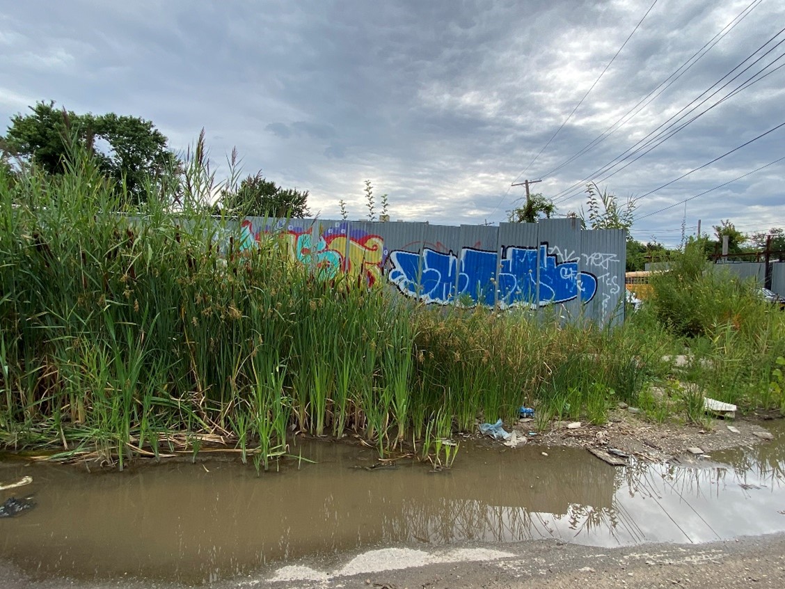 Flooding is a critical concern for many residents and is connected to other issues. While originally planned as a residential neighborhood, the lack of sewer infrastructure makes it costly to maintain or construct a home. Today, most streets contain open industrial uses or overgrown, vacant lots, including a 17-acre City-owned site. And though wild plants grow tall along street edges, industrial uses and septic tank leaks have contaminated the land and groundwater.