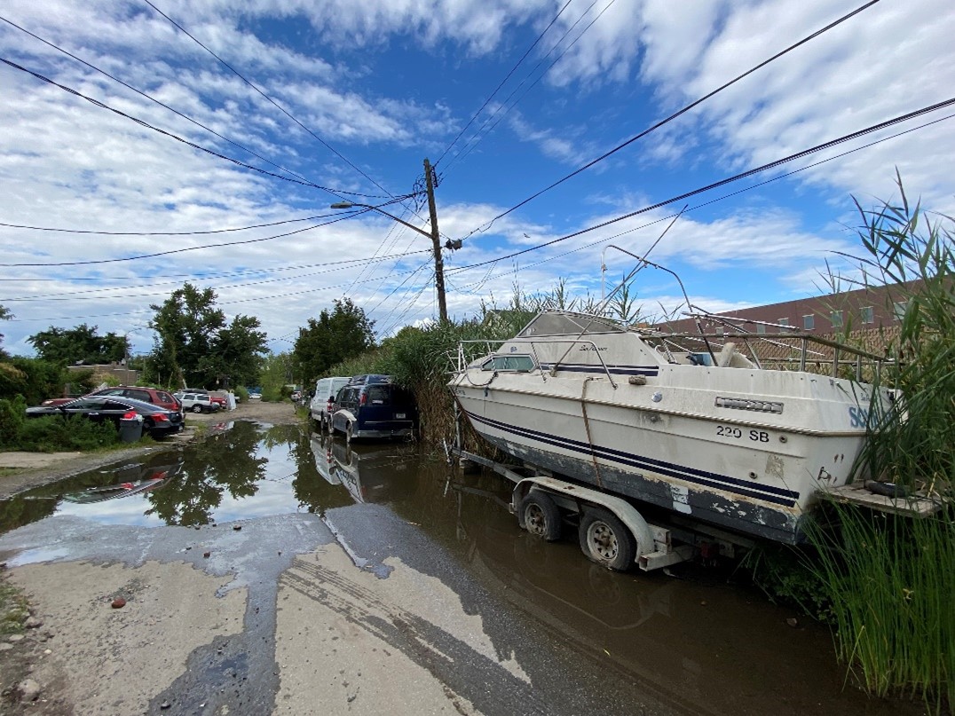 The Jewel Streets refer to the north-south streets named after various jewels: Ruby, Emerald, Amber, and Sapphire Streets. The 12-block neighborhood straddles East New York, Brooklyn and Lindenwood, Queens and is known to residents as “The Hole” due to its sunken streets. The low-lying area’s high water table and lack of comprehensive stormwater and sanitary sewer infrastructure contribute to year-round flooding, even on sunny days.