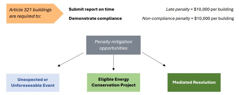 The DOB rules promote compliance rather than penalties and allow owners of Article 321 buildings additional time to comply with either Article 321 compliance requirement - as long as they can demonstrate progress. Note that penalties may be imposed annually, at the Department’s discretion, until Article 321 compliance is demonstrated.