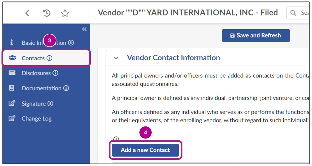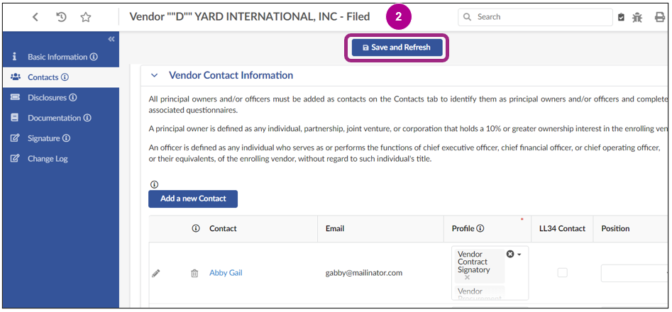 For information on how to identify LL34 contacts in your Vendor Profile, view Identify Your Organization's LL34 Contacts.