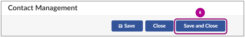 - Click the Save and Close button at the top of the window to return to the Contacts page.