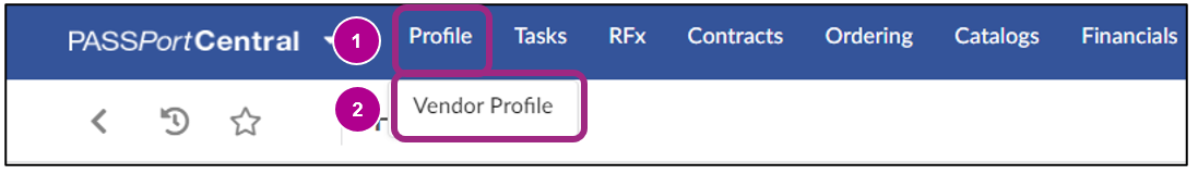 - Click Vendor Profile from the drop-down menu.
