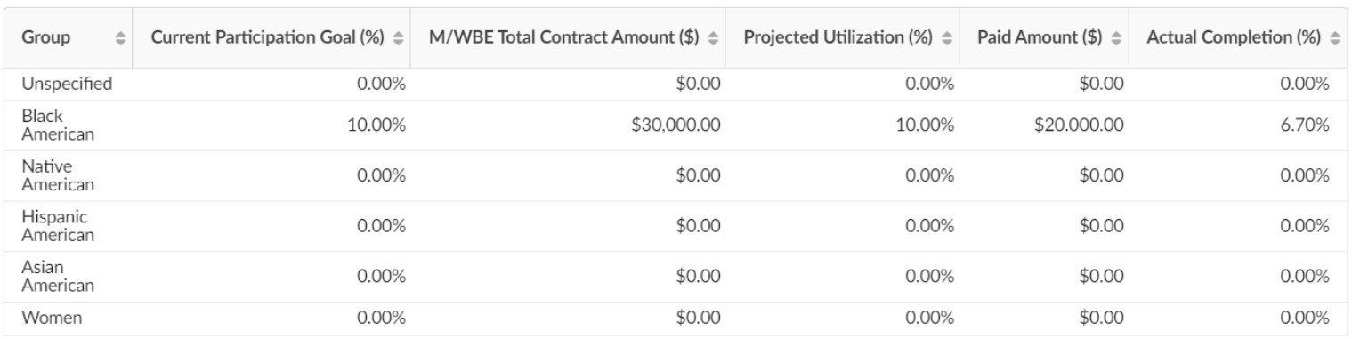 - Paid Amount ($): This column lists how much in dollars the M/WBE groups have been paid for this contract.