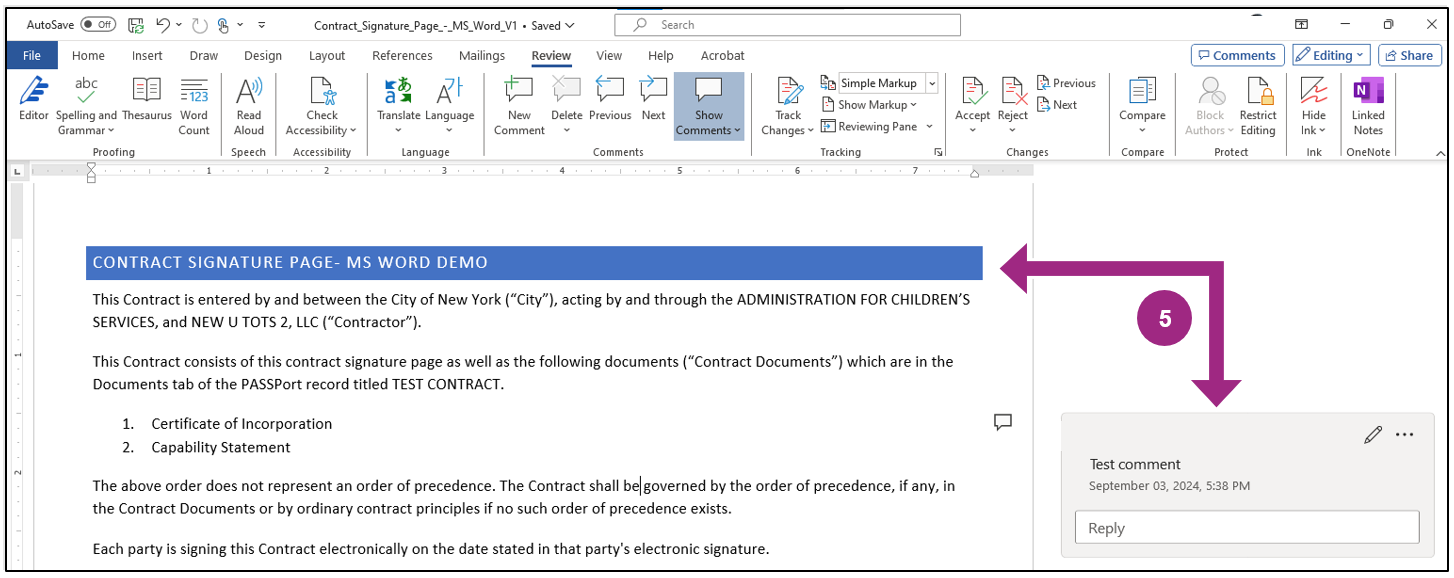 - Make any necessary edits to the document. You can also leave comments and respond to comments as you would in a typical Word document.