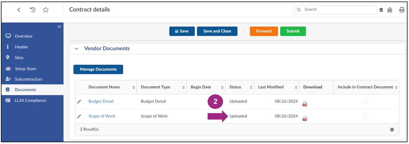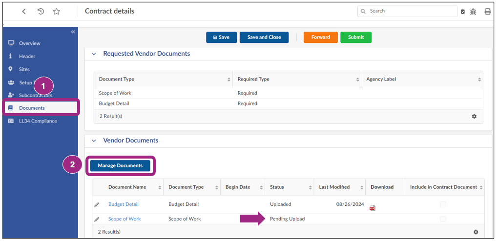 The contract returns to the agency who reviews the submitted documents for accuracy. If there are any issues with the documents provided, the agency may return the task back to your organization for correction. You will receive an email notification from PASSPort if the task is returned to you.