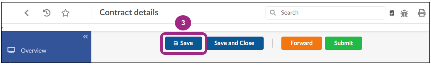 Once all required sections of the contract have been completed, the contract can be submitted to the agency for review. Click the green Submit button near the top of the page.