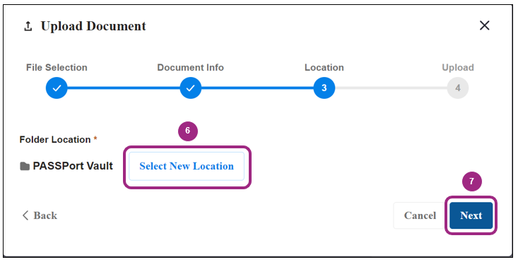 - Select either the Upload from Computer or Link from PASSPort Vault option.