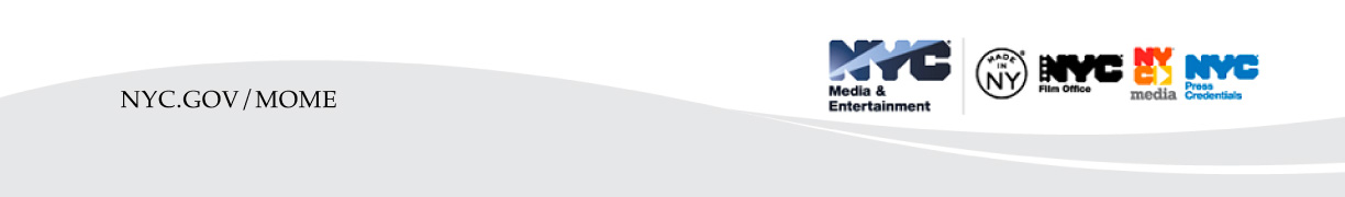 The Film Office at the Mayor's Office of Media and Entertainment ("MOME") issues permits for certain motion picture and still photography activity on most exterior property owned by the government of the City of New York ("City") under NYC Charter Section 1301(1)(r) and Title 43, Chapter 9 of the Rules of the City of New York ("MOME Film Permits").
