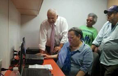 NYCHA General Manger Michael Kelly, Tenant Association President Carol Wilkins and representatives from Congresswoman Carolyn Malony, State Senator Michael Gianaris and Assembly Woman Cathy Nolan’s offices officially unveiled the new kiosk, toured one of NYCHA’s Digital Vans – a mobile computer lab available to residents and low-income New Yorkers – and saw a demonstration of the new handhelds staff use to manage work orders.
